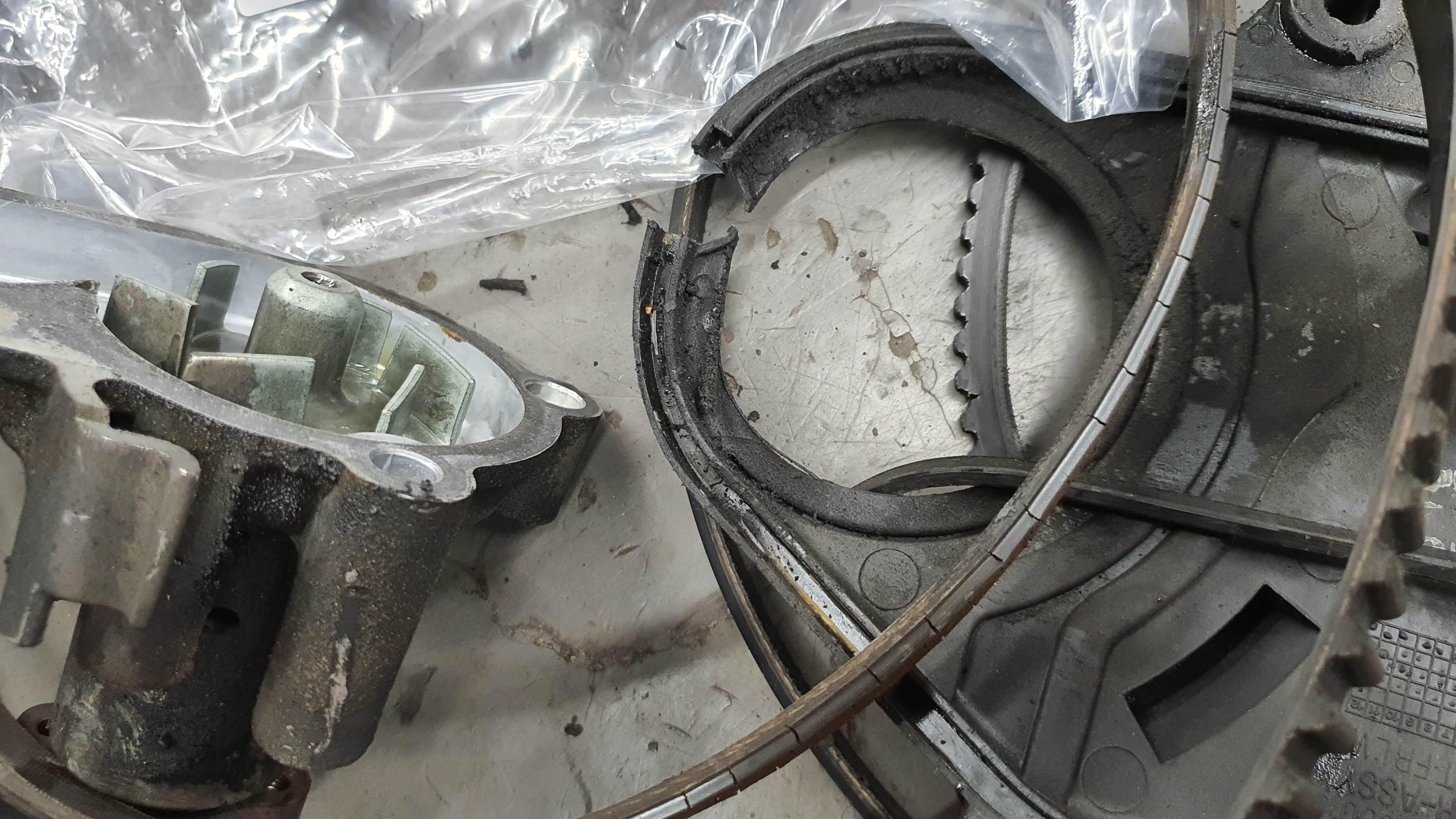 외부벨트의 균열도 심하고 소음도 발생되는 상태이며