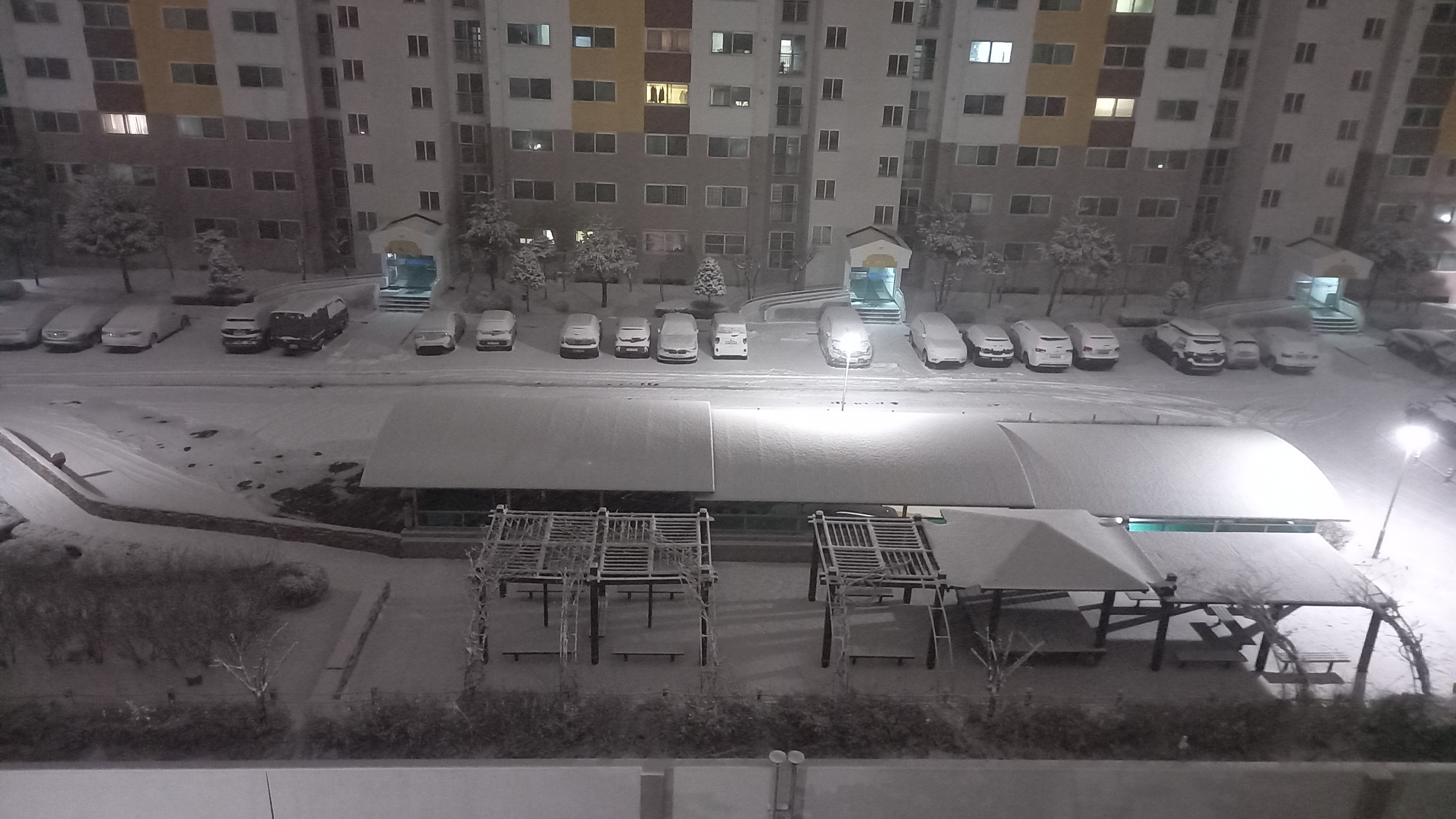 경비원과 관리실 직원분들은 제설작업에 고생이시군요