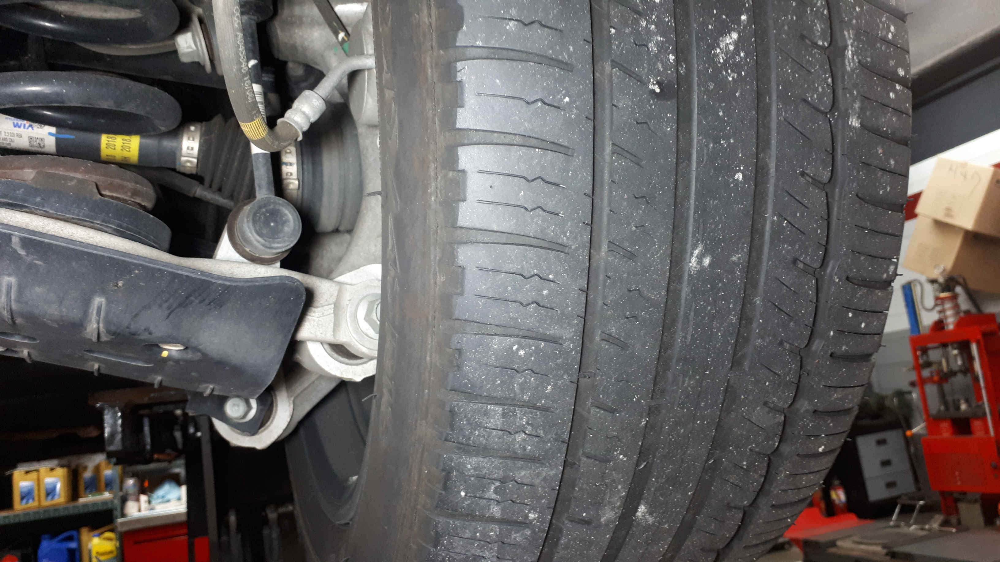 후륜타이어의 상태입니다 울퉁불퉁하게 변형이 되어 있는 상태입니다
