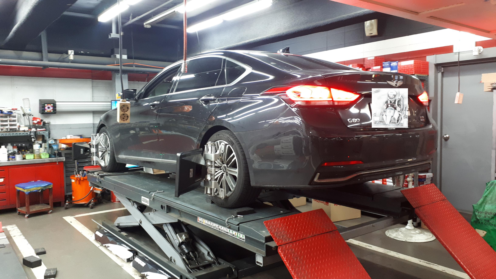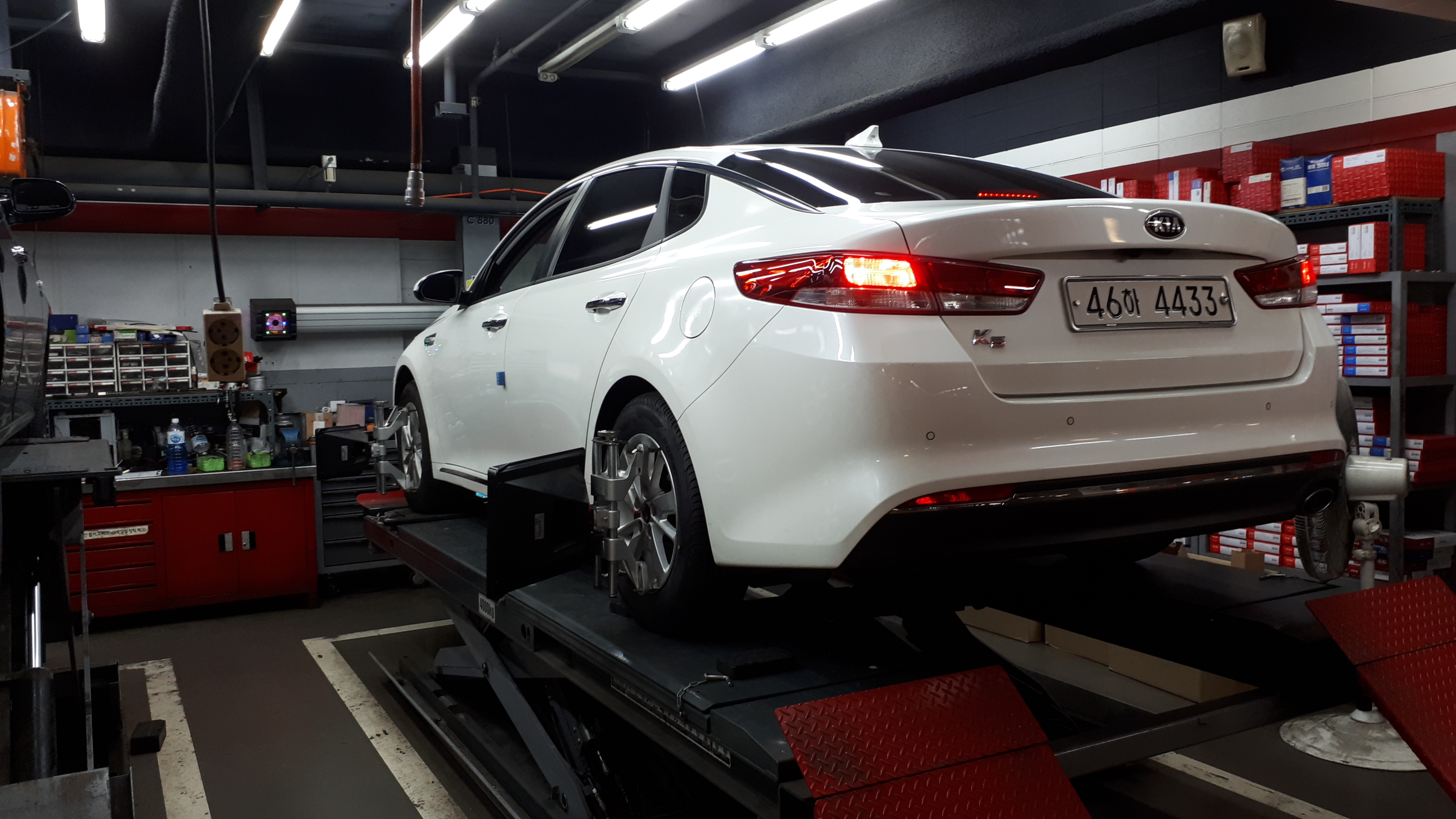 역시 타이어 교환 후 얼라이먼트 작업을 진행합니다